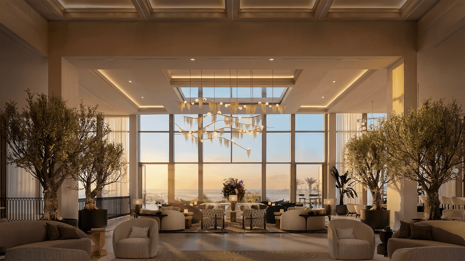 As soon as you enter, the space feels open and peaceful. The lobby features clean lines, natural materials, and furniture that is both modern and timeless. Instead of copying the past, the design lets it quietly influence the atmosphere. It pays tribute to Egypt’s stories, traditions, and strong connection to water.