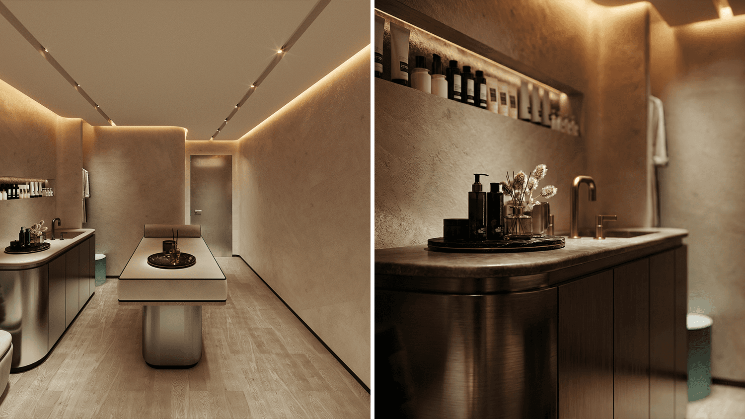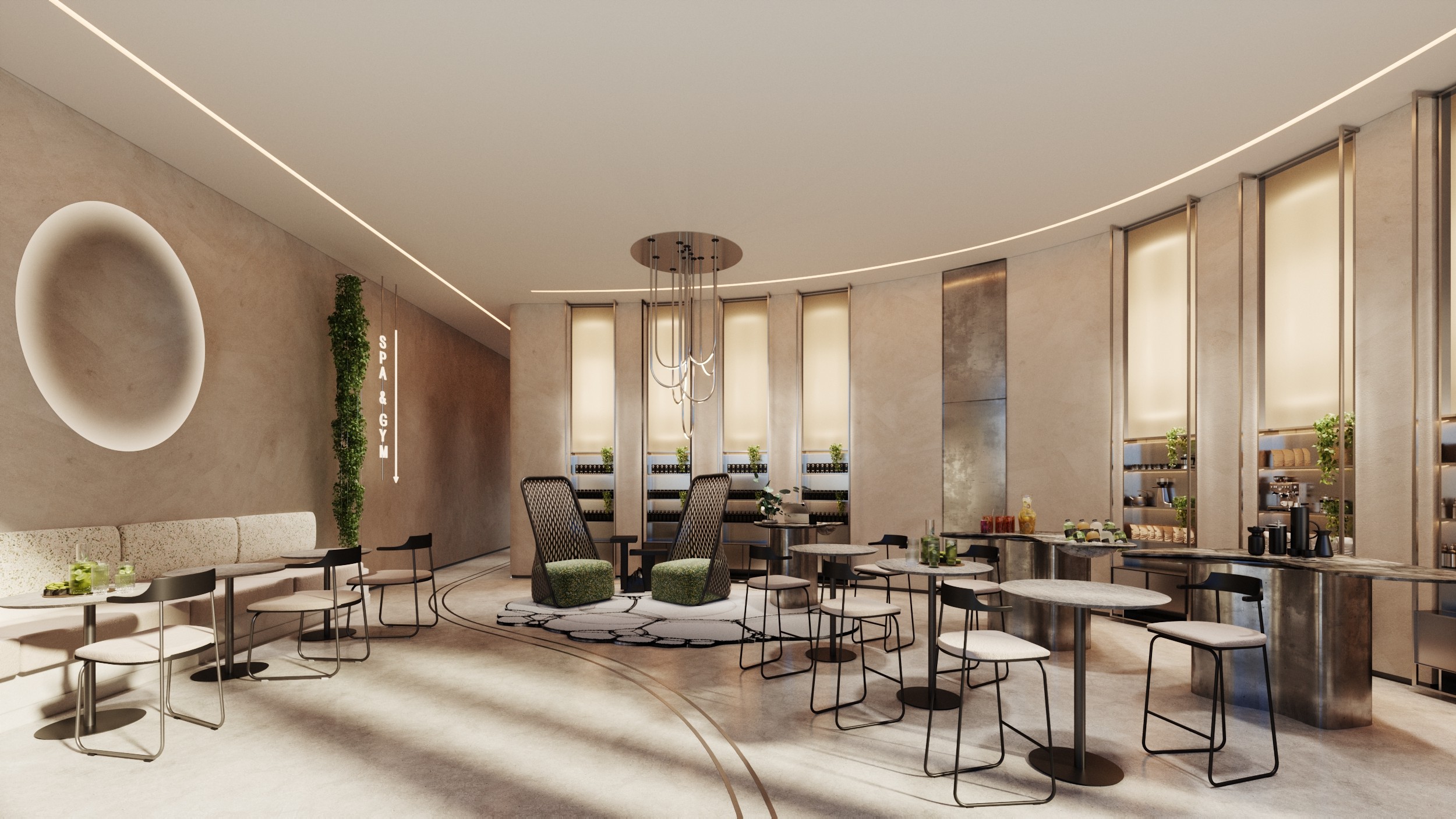 The spaces facilitate a balance of performance and recovery, featuring elite training facilities, high-performance labs, peaceful recovery suites, shaded terraces, and calming wellness zones. The architecture embodies the discipline of sport—structured, intentional, and resilient—while the interiors create a soothing environment with natural materials, softly filtered light, and open views of the coastline.