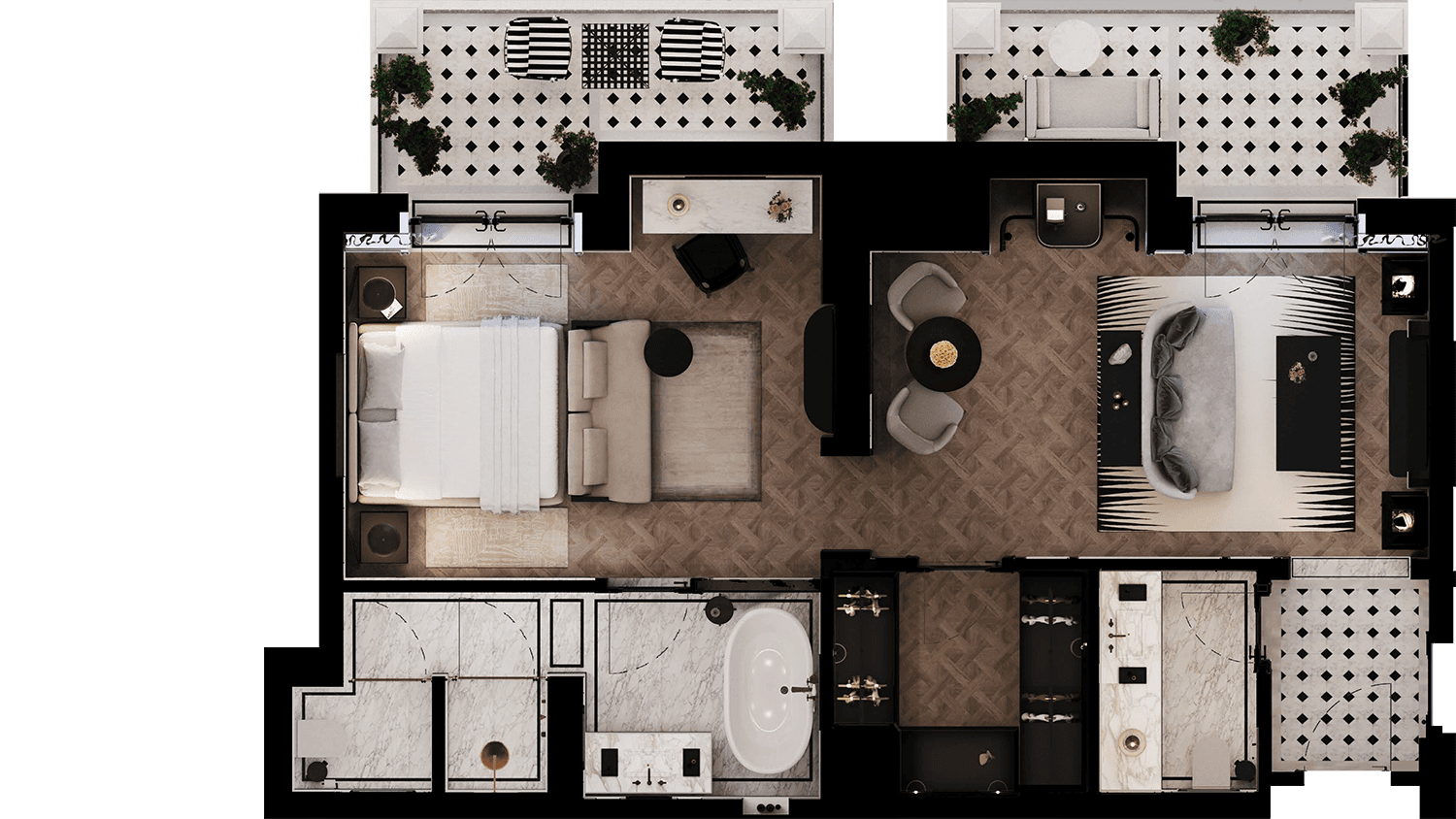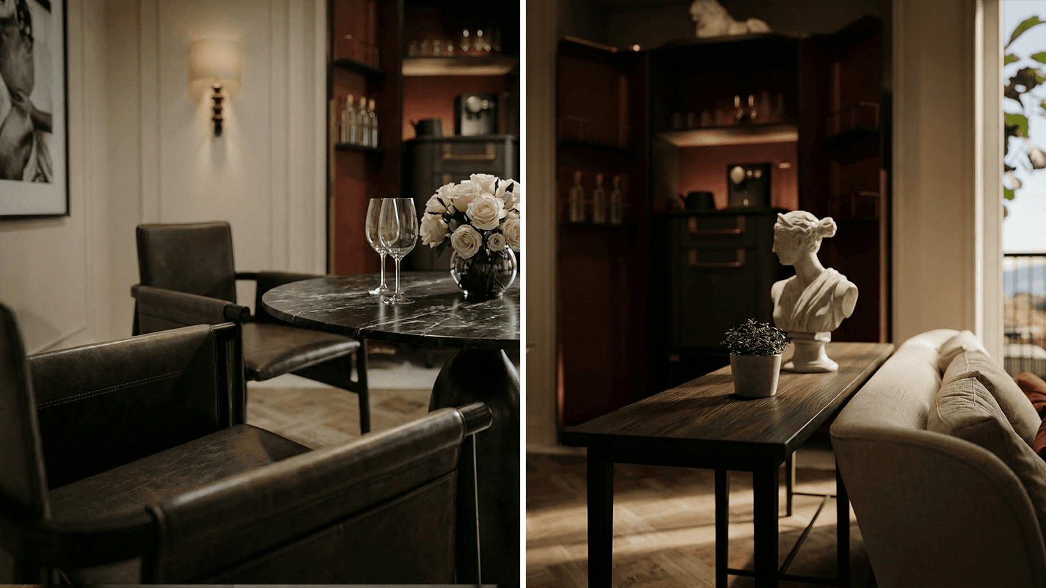 The design honors the glamour of the 1950s and 60s. Portraits of Grace Kelly and works by Mario Testino are thoughtfully placed. These pieces do not stand out loudly; instead, they add a quiet touch. The space creates a conversation between classic icons and modern comfort, rather than between nostalgia and new trends.